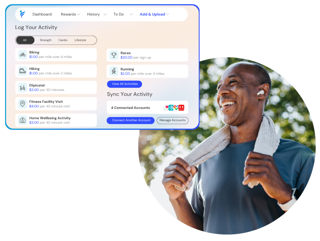 Motivate employees to stay active with rewards for workouts, movement, and daily activity that fits their lifestyle.