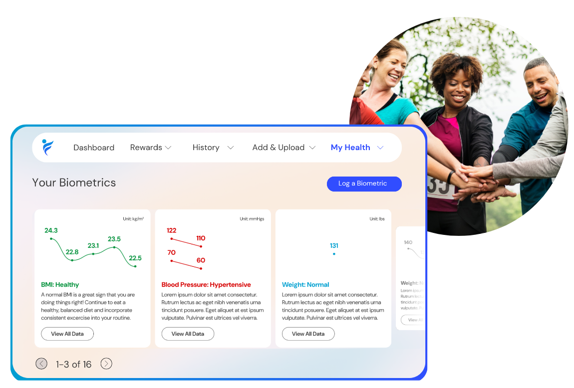 For employers: Aggregate-level reports only (never individual data) that show population health trends, year-over-year improvements, and key areas to target for future wellness programming.